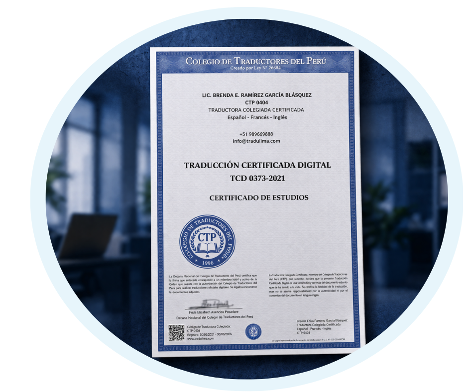 La Traducción Certificada Digital se envía en formato PDF y puede imprimirla todas las veces que lo requiera. Si prefiere la versión física clásica, deberá recogerla en Miraflores.